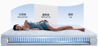 将床垫划分为头背部,腰臀部,腿部三区承托,中间硬两边软,让人体脊柱保持自然的曲线,适配大重量体型的人;